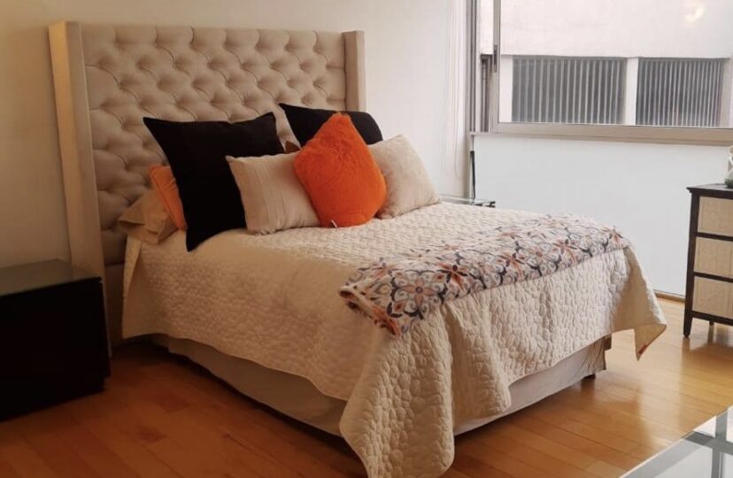 Amplio departamento de 170 m2 ubicado en primer piso de condominio, cuenta con dos recamaras, principal con baño completo, baño y vestidor, cuarto de televisión, cocina integral, comedor, 1/2 baño, área de lavado, bodega, y tres cajones de estacionamiento, acabados perfectos, elevador y vigilancia 24 horas.