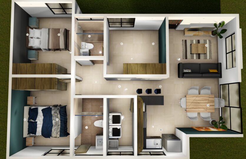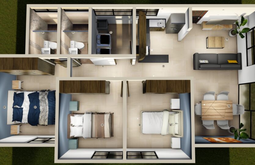 Contamos con dos prototipos de 85 y 90 mts ambos con 3 recámaras y dos baños completos.