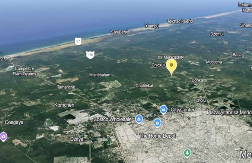A 10km de Mérida, y a 22 km de la costa de la Playa de Chicxulub Puerto.